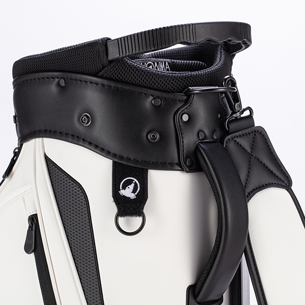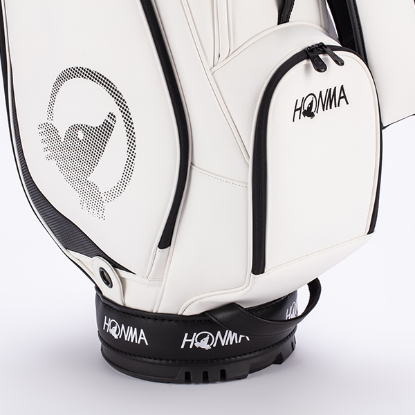 大きく配置されたモグラロゴが目を引く、スポーティーデザインのカート型キャディバッグ。ダイヤ柄と幾何学柄を巧みに組み合わせた表面感のある素材使いが特徴です。 同デザインのボストンバッグ(BB12632)及びポーチ(PB12610)と連動したモデルとなっており、セットで揃えることでゴルフ場での存在感がより一層際立ちます。 カラーWHITE、BLACK、BEIGE サイズ9.0インチ 重量4.0kg 素材合成皮革(P.U) 品番CB12610 生産国中国 機能シューズインポケット、マグネットポケット、グローブホルダー