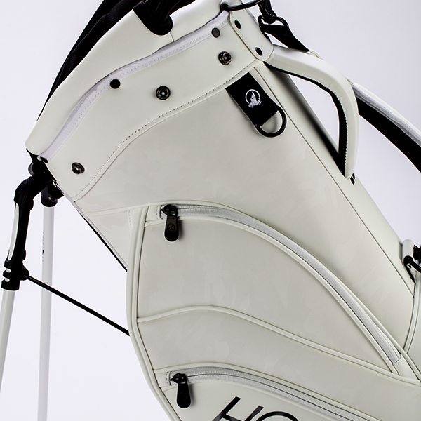 見る角度によって見え方が変わったり、立体的に見える特殊な手法を用いたカモフラージュ生地を採用したスタンドバッグ。 肩にフィットするカーブショルダーやグローブホルダーを採用しています。 ボストンバッグ(BB12634)及びクラブケース(CC12602)とデザイン連動したモデル。