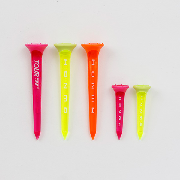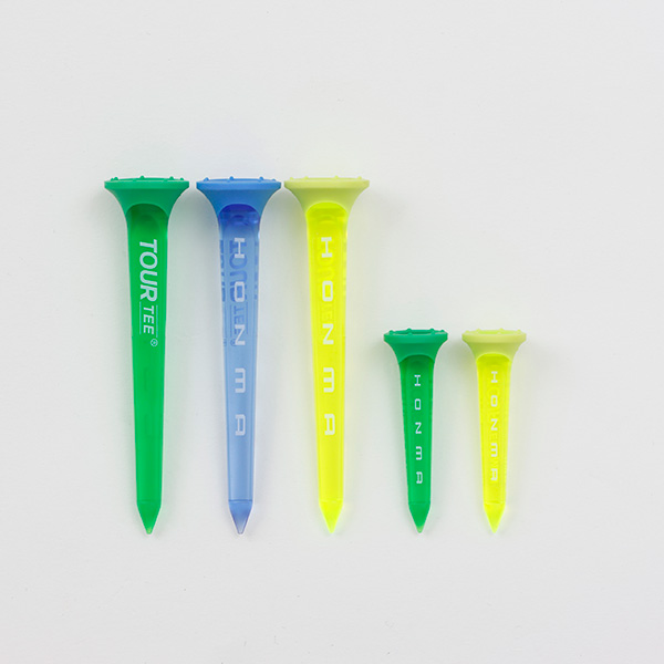 新製品TW777で使用されている新「HONMA」ロゴが本体、モグラロゴがティー上部にプリントされています。80mmタイプはドライバー、45mmタイプはフェアウェイやロングアイアンに最適です。ティーヘッド部は特殊ラバー加工の摩擦軽減のための加工がされておりインパクト時の抵抗とスピンを軽減し飛距離の向上と安定をもたらせます。また強化プラスチックを使用し耐久性にも優れます。「TOUR TEE(R)」は全製品環境に優しいリサイクルプラスチックで作られ、環境へ配慮をしています。80mm x3本、45mmx2本、合計5本入り