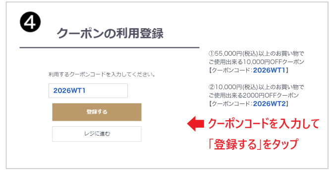 税込55,000円以上で10,000円OFF|クーポンコード:2026WT1