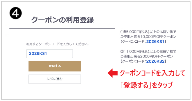 税込55,000円以上で10,000円OFF|クーポンコード:2026KS1