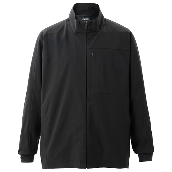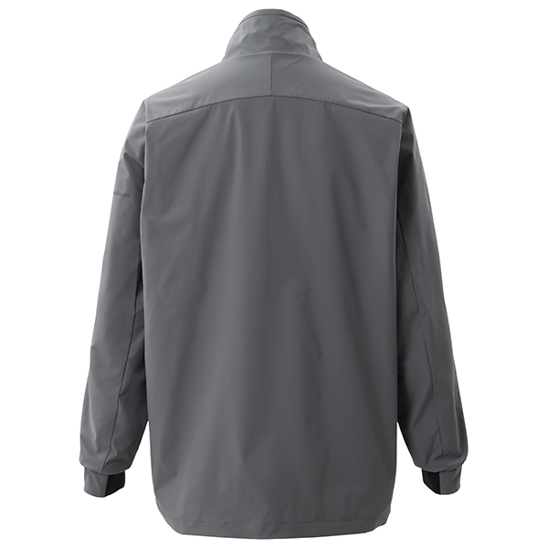 立体的な衿周りが特徴の裏地メッシュ付きフルジップジャケット。撥水、防風に優れる素材に加え左胸ファスナー付きポケット、袖口リブ仕様、前後身頃前後差有り無駄を省いたミニマルデザインと洗練されたシルエットが特徴です。ロゴは左袖に配置し主張しすぎない上品なブランド表現を実現しました。上質な機能とデザインを、より身近に。シンプルを求める現代ゴルファーの新たな定番モデルとなります。