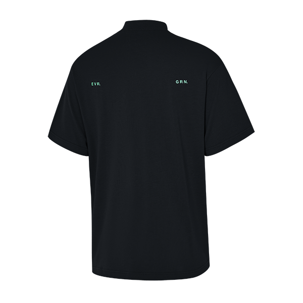 顔周りをシャープに演出する、独自カッティングのハイネックシャツ。汗によるベタつきを抑え、ドライでクールな着心地を維持。背中にあしらわれた蓄光プリントロゴがアクセント。アクティブなスタイルをより印象的に引き立てます。 (cm)