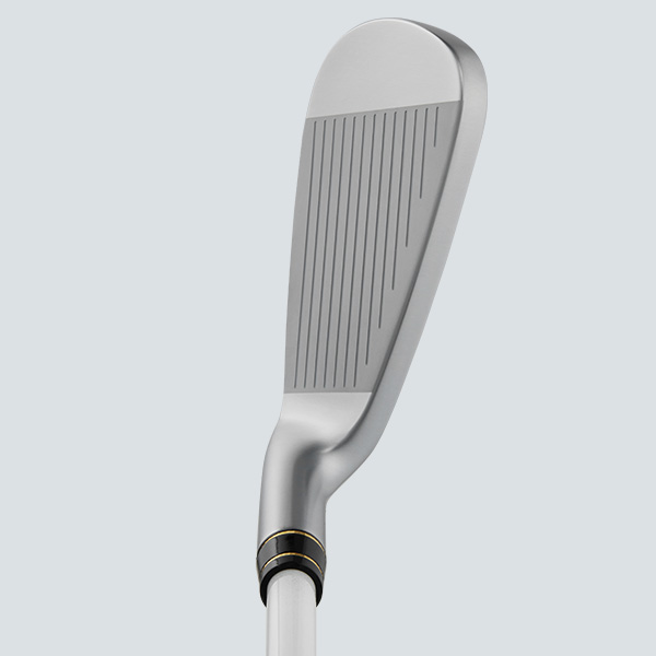 バックヒール寄りにウエイトを配置することでつかまり性能をアップ。安定した方向性と優れた直進性を実現。番手ごとの最適な重心設計と 広いソール面の低重心化により、どんなライからも高弾道でグリーンをデットに狙える。