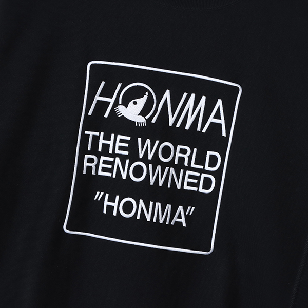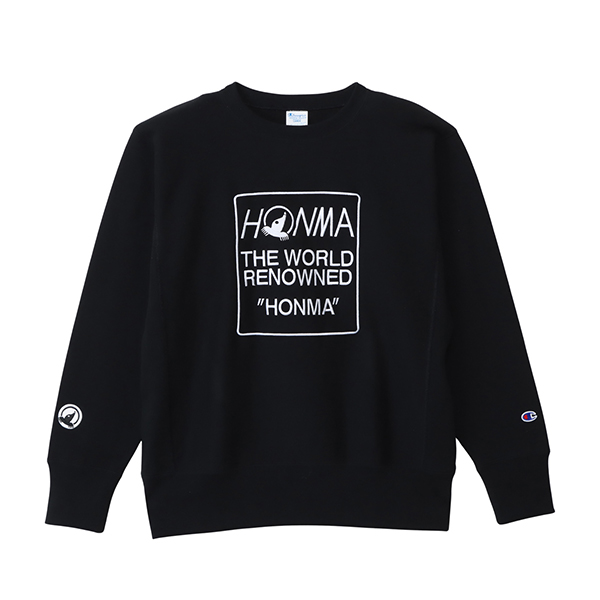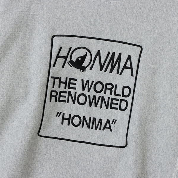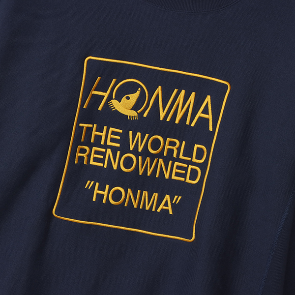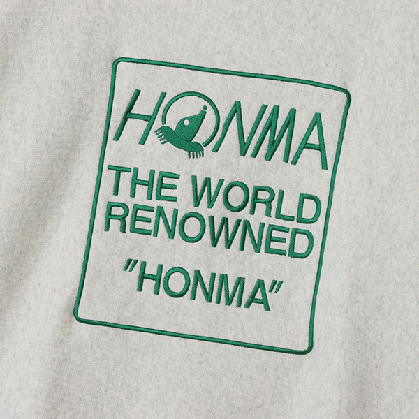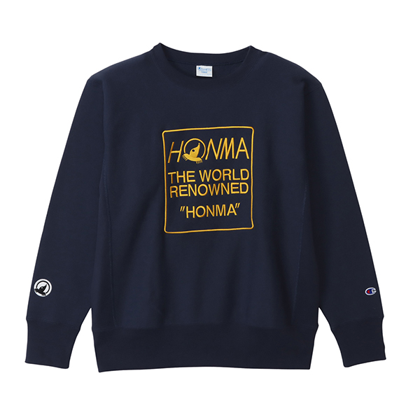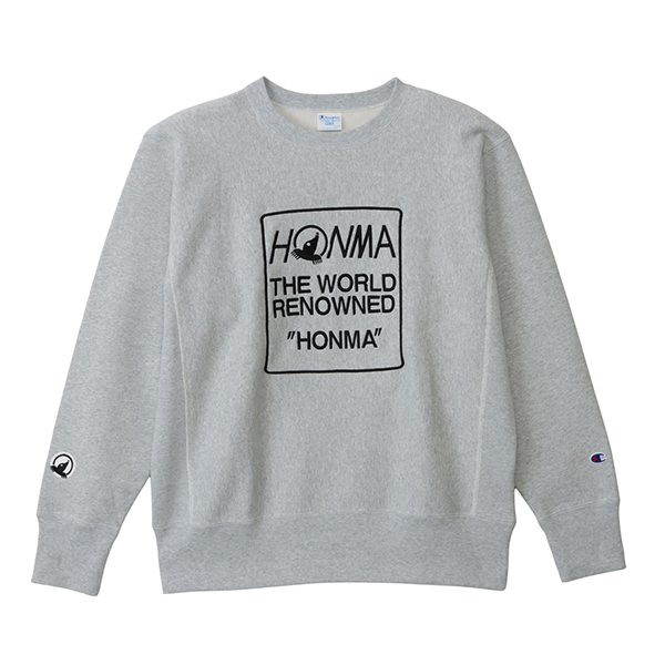 「HONMA」が以前掲げていたタグライン「THE WORLD REKNOWNED “HONMA”」をフィーチャーし、世界に名を馳せたブランドの誇りを、現代的なスタイルで再構築したアイテムです。Champion®(チャンピオン)のスウェットシャツは、「ザ キング オブ スウェットシャツ」と評されるほど、世界中の多くのファンに愛されてきました。チャンピオンを代表する製法の「REVERSE WEAVE®(リバースウィーブ®)」。洗うほどにタフになり、着こむほどに独特の風合いや味が出る裏起毛素材を使用した「REVERSE WEAVE® 11.5oz. Terry Fleece(リバースウィーブ® 11.5オンス テリーフリース)」シリーズのクルーネックスウェットシャツです。コットン素材は環境に配慮して生産されたサステナブルなコットンを100%使用。本来は縦方向に使われる生地を横方向に使用する「REVERSE WEAVE®」製法によって縦の生地の縮みを防ぐと同時に、両脇に「EXPANSION GUSSET(エクスパンションガゼット)」を付けることで横の縮みへの影響を少なくし、動きやすさに配慮しています。身幅、肩幅にゆとりを持たせたリラックスフィット。胸は「HONMA」がグローバル展開時に掲げていたタグラインをモチーフにしたグラフィックを刺繍、右袖には「HONMA」アイコンのモグラのワッペンが付いています。