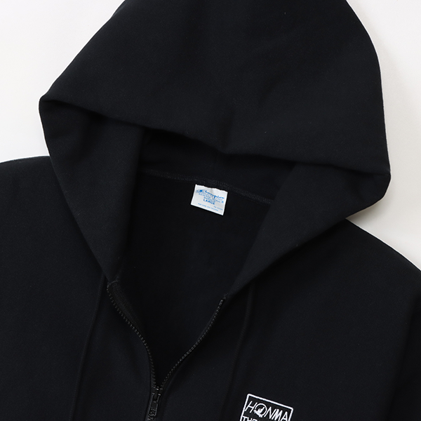 「HONMA」が以前掲げていたタグライン「THE WORLD REKNOWNED “HONMA”」をフィーチャーし、世界に名を馳せたブランドの誇りを、現代的なスタイルで再構築したアイテムです。Champion®(チャンピオン)のスウェットシャツは、「ザ キング オブ スウェットシャツ」と評されるほど、世界中の多くのファンに愛されてきました。チャンピオンを代表する製法の「REVERSE WEAVE®(リバースウィーブ®)」。洗うほどにタフになり、着こむほどに独特の風合いや味が出る裏起毛素材を使用した「REVERSE WEAVE® 11.5oz. Terry Fleece(リバースウィーブ® 11.5オンス テリーフリース)」シリーズのジップフーデッドスウェットシャツです。コットン素材は環境に配慮して生産されたサステナブルなコットンを100%使用。本来は縦方向に使われる生地を横方向に使用する「REVERSE WEAVE®」製法によって縦の生地の縮みを防ぐと同時に、両脇に「EXPANSION GUSSET(エクスパンションガゼット)」を付けることで横の縮みへの影響を少なくし、動きやすさに配慮しています。身幅、肩幅にゆとりを持たせたリラックスフィット。左胸は「HONMA」がグローバル展開時に掲げていたタグラインをモチーフにし、右袖には「HONMA」アイコンのモグラのワッペンが付いています。